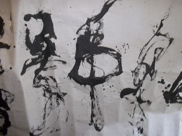 文字かと思いきや、墨を飛ばしてあったり、