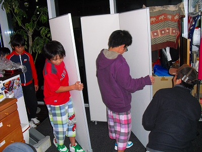 パテーション組み立てを手伝ってくれました