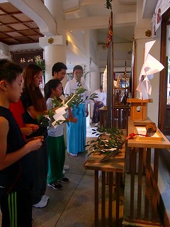 ありがとうございます!朝食後は、加藤神社での玉串奉納に参加