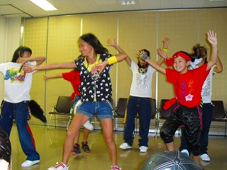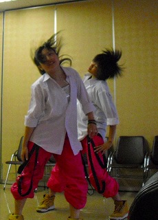 そして、「みんなで踊ろう!」のコーナーでは「ダンスよさこい」の振りを一緒にしました