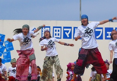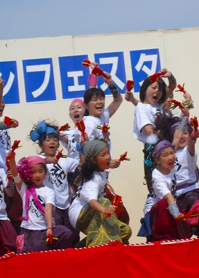 と、いうことで 「マリンフェスタ2011」の「親子よさこい」のステージをレポートをお届けします