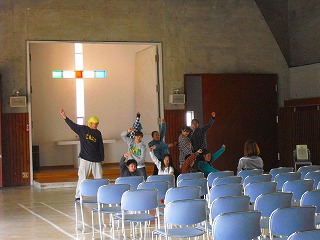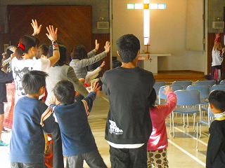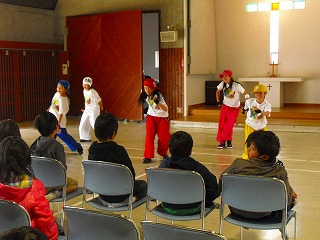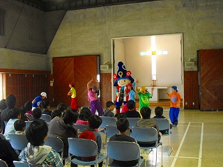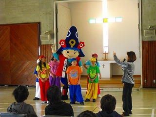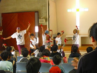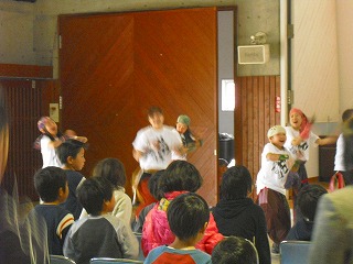 中盤は「みんなで一緒に踊ろう!!」のコーナーで愛児園の子どもたち・先生方と