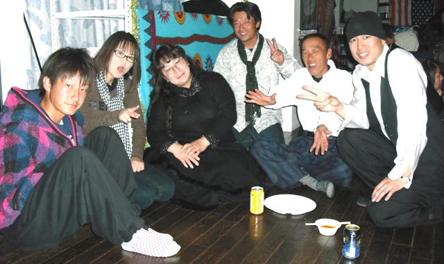 後ろの座席で照れ笑いの沙弥でした