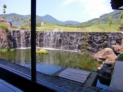 本店では、鯉がいっぱい泳いでる池があり、